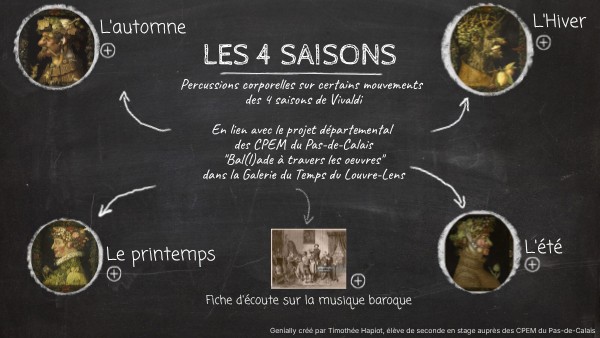 Percussions corporelles sur certains mouvements des 4 saisons de Vivaldi En lien avec le projet départemental des CPEM du Pas-de-Calais "Bal(l)ade à travers les oeuvres" dans la Galerie du Temps du Louvre-Lens