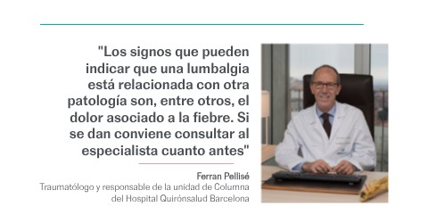 "Los signos que pueden indicar que una lumbalgia está relacionada con otra patología son, entre otros, el dolor asociado a la fiebre. Si se dan conviene consultar al especialista cuanto antes"