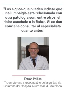 "Los signos que pueden indicar que una lumbalgia está relacionada con otra patología son, entre otros, el dolor asociado a la fiebre. Si se dan conviene consultar al especialista cuanto antes"