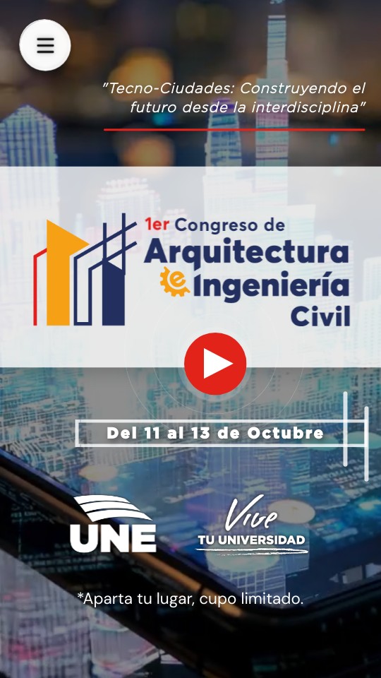 Imagina las ciudades del mañana y prepárate para crearlas desde hoy. Te invitamos a vivir una experiencia única en el primer Congreso de Arquitectura e Ingeniería, donde el diseño, la tecnología y la sostenibilidad se unen para reestructurar el entorno urbano. A través de conferencias magistrales, talleres interactivos y demostraciones tecnológicas en vivo —como BIM colaborativo, impresión 3D, drones topográficos y escaneo láser— podrás conocer herramientas reales que están transformando la forma de construir y habitar nuestras ciudades. Desde primer semestre hasta los grados más avanzados, este espacio está hecho para ti: para inspirarte, retarte y mostrarte cómo la colaboración entre disciplinas puede abrir nuevas posibilidades en tu formación y tu futuro profesional. ¿Estás listo para ser parte del cambio? Construyamos juntos las tecno-ciudades del mañana.