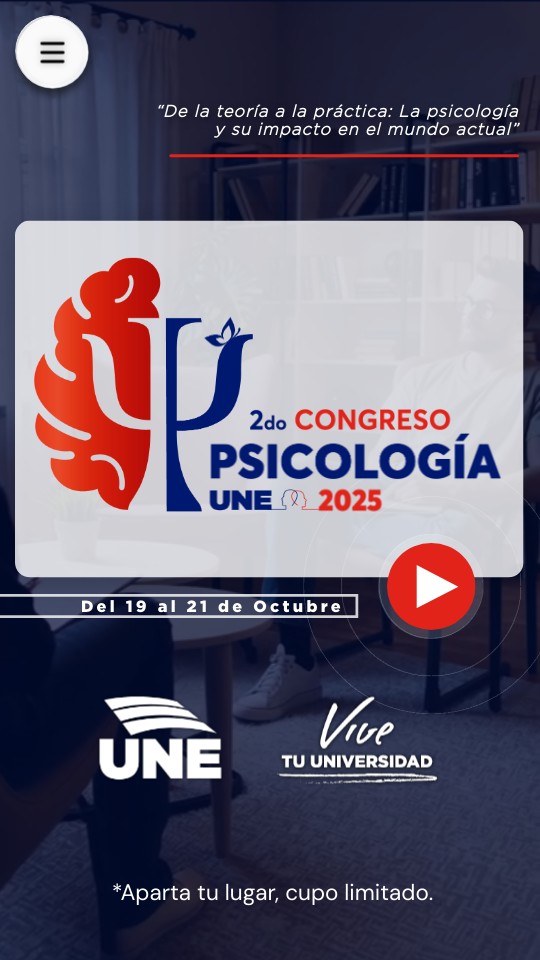 ¿Qué lugar ocupa la psicología en el mundo que habitamos? En el segundo congreso Psicología UNE 2025, te invitamos a descubrir cómo las distintas ramas de la psicología están transformando realidades, retando paradigmas y abriendo nuevas posibilidades de intervención. A través de conferencias magistrales, talleres prácticos y foros de diálogo con especialistas, exploraremos temas que van desde la psicología social y comunitaria, hasta la psicología del deporte, forense, organizacional, de la salud y la tanatología, incluyendo el fascinante vínculo entre la neuropsicología y la inteligencia artificial. Este congreso no solo busca ampliar tu conocimiento, sino inspirarte a pensar, cuestionar y actuar. Porque la psicología no se queda en el aula: vive en cada contexto, cada persona, cada historia. Da el paso de la teoría a la práctica y descubre tu impacto como futuro profesional de la salud mental.