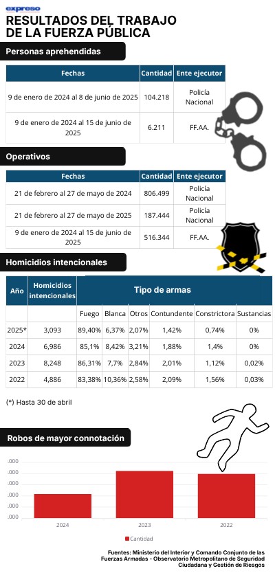 Fuentes: Ministerio del Interior y Comando Conjunto de las Fuerzas Armadas - Observatorio Metropolitano de Seguridad Ciudadana y Gestión de Riesgos
