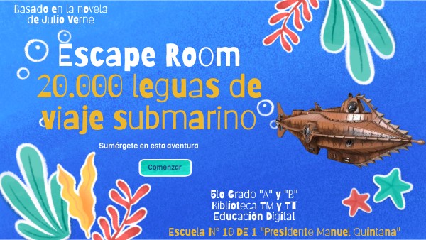 Participa en esta emocionante travesía submarina en busca de la salida del Nautilus. El Capitán Nemo escondió las llaves que llevan a los botes para escapar de la nave, enfréntate a él para poder recuperarlas ¡Resuelve los enigmas y desafíos que encontrarás por el camino y házte con la salida!