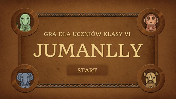Przeżyj niesamowitą przygodę z Jumanlly dla uczniów klas 6, , A oto jej zasady : 1. Każdy zgraczy wybiera swój charakter, następnie klikają play, 2. Pierwszy ruch wykonuje krokodyl, rzucając kostką i ruszając się o tyle pól ile jest oczek na kostce, a reszta graczy robi to samo z kolejnością wskazówek zegara. Jeśli na kostce wypadnie czszka gracz cofa się na start albo na nim zostaję jeśłi jest to pierwszy ruch gracza. 3. Gdy staniesz na kropce, kliknij w nią i wyświetli się polecenie lub pytanie, na które wykonujesz lub odpowiadasz. Po udzieleniu odpowiedzi przy innych sprawdzasz klikając w oczko. Jeśli żle odpowiesz, rzuć kostką i cofnij się o daną ilość oczek. 4. wygrywa gracz, który jako pierwszy dojdzie do zielonego lustra na środku, w które klika.