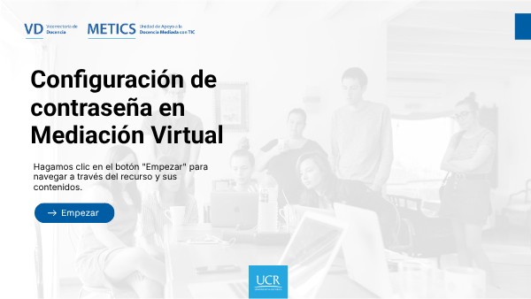 La contraseña de inscripción o o clave de matriculación, se refiere a una serie de caracteres, escritos en letras, números o o símbolos ortográficos, que permiten la Auto-Inscripción de estudiantes para ingresar a un entorno en específico. Esta es proporcionada por los docentes o mediadores, y estará activa cuando los entornos virtuales de los cursos no estén enlazados con la oficina de Registro e Información de la Universidad de Costa Rica. La contraseña se le solicita al docente en el proceso de Autogestión de entornos virtuales. Para cambiar o consultar la misma puede realizarlo desde el menú de Participantes.