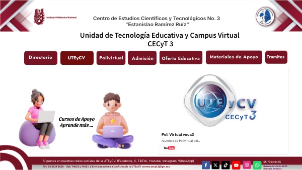 Tel. 55 5624 2000 Ext: 74035 y 74051 o Envia un correo a la oficina de la UTEyCV correo:cecyt3@ipn.mx