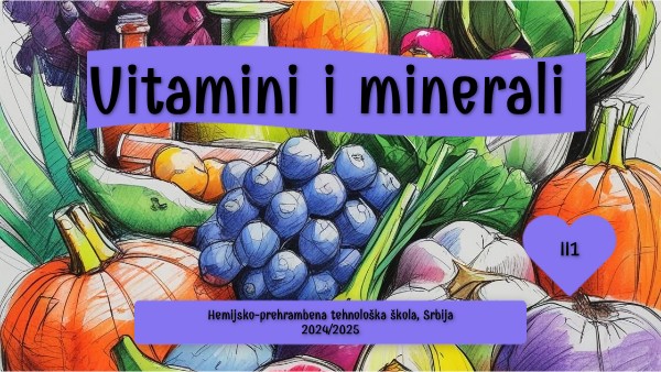 Dragi učenici, vaš je zadatak je da napravite postere o vitaminima koristeći Canvu, PosterMyWall, PowerPoint, Adobe Spark Post ili bilo koju drugu aplikaciju po vašem izboru. Poster bi trebalo da sadrži osnovne informacije o određenom vitaminu: 1) Hemijsku formulu vitamina 2) Namirnice koje sadrže taj vitamin 3) Potrebne dnevne potrebe za tim vitaminom 4) Bolesti ili poremećaji koji nastaju kao posledica nedovoljnog ili preteranog unosa tog vitamina putem ishrane. Neke od linkova koje možete koristiti prilikom izrade postera https://en.wikipedia.org/wiki/Vitamin https://www.hsph.harvard.edu/nutritionsource/vitamins/ https://www.nhs.uk/conditions/vitamins-and-minerals/ https://www.britannica.com/science/vitamin https://www.webmd.com/vitamins-and-supplements/ss/slideshow-vitamins-minerals-overview https://www.britannica.com/science/human-nutrition/Vitamins