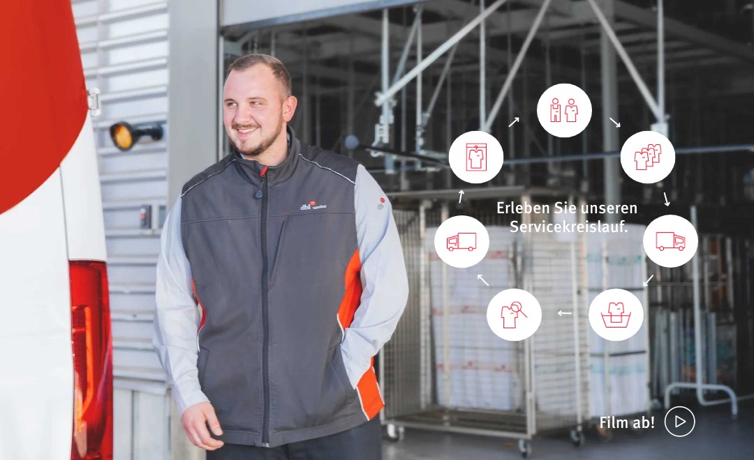 Basis unseres Servicekreislaufs ist die ausgeklügelte Logistik, die ständig weiter optimiert wird. Um Wege zu verkürzen, Energie zu sparen, euch noch zuverlässiger zu beliefern. Unsere Servicefahrer holen eure verschmutzte Kleidung zu den fest vereinbarten Lieferrhythmen ab und tauschen sie gegen frisch gepflegte aus.
