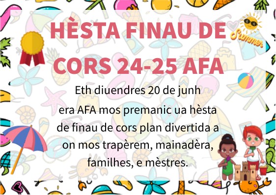 Eth diuendres 20 de junh era AFA mos premanic ua hèsta de finau de cors plan divertida a on mos trapèrem, mainadèra, familhes, e mèstres.