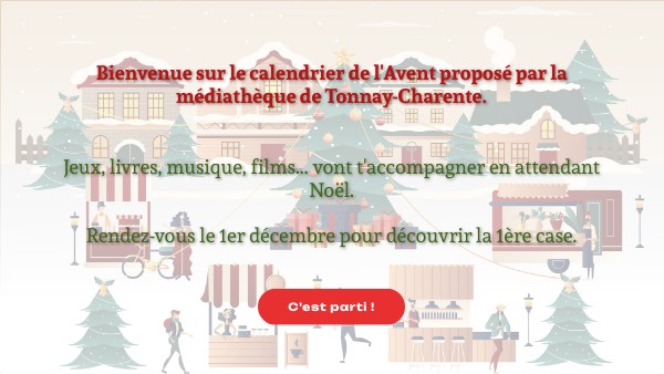 Bienvenue sur le calendrier de l'Avent proposé par la médiathèque de Tonnay-Charente.