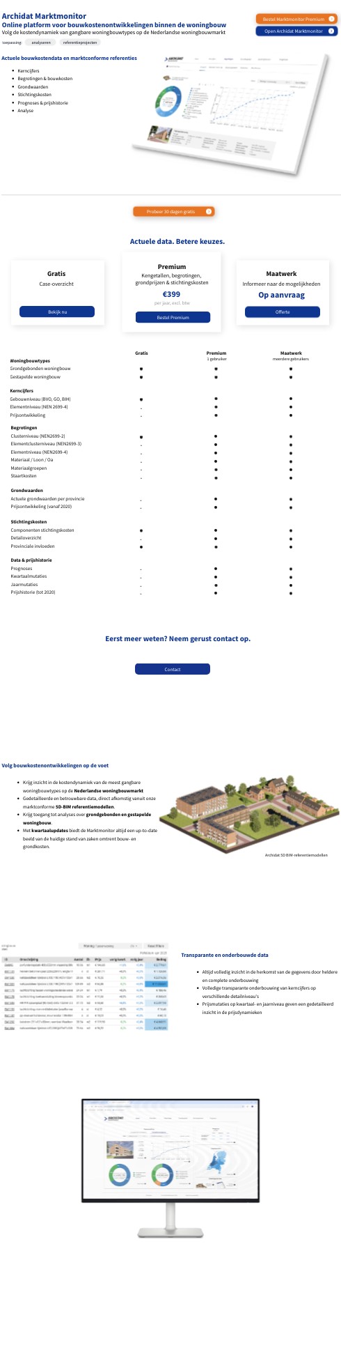Sluit nu een jaarabonnement af en krijg toegang tot:- Archidat Marktmonitor: Online platform voor real-time bouwkostendata- en analyses