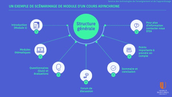 Rythme et flexibilité : Les étudiants doivent pouvoir suivre le cours à leur propre rythme, sans contraintes de temps. Interactivité : Les étudiants doivent pouvoir interagir avec le contenu et avec les autres étudiants. Clarté et structuration : Le cours doit être bien structuré pour faciliter la compréhension et l'apprentissage.