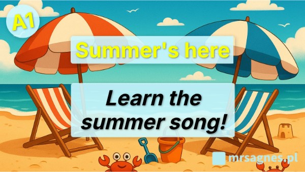 We’re on the beach, hooray, hooray! We laugh and dance and shout all day! We just love the summer here, Let’s enjoy this time of year!
