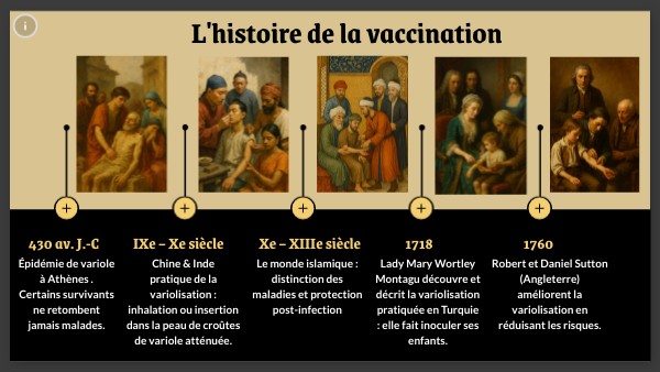 Pendant la guerre du Péloponnèse, une terrible épidémie frappe la ville d’Athènes, alors assiégée par Sparte. Thucydide, historien grec et témoin direct de la catastrophe, décrit dans La Guerre du Péloponnèse les effets de la maladie, probablement la variole (certains chercheurs évoquent aussi la typhoïde ou la fièvre hémorragique virale).Il note un fait surprenant :« Les mêmes personnes ne furent pas attaquées deux fois ou, si elles l’étaient, ce n’était jamais mortel. »C’est l’une des premières descriptions connues d’un phénomène d’immunité naturelle : les personnes ayant survécu à une infection sont protégées contre une réinfection.À l’époque, il n’existe aucune connaissance sur les microbes, les virus ou le système immunitaire. Pourtant, l’observation empirique de Thucydide suggère déjà qu’il se passe quelque chose dans le corps après la guérison, une mémoire protectrice, bien avant que les mots "anticorps" ou "vaccination" n’existent.• Thucydide n'explique pas le phénomène, mais son observation est rigoureuse.• Cela constitue une base empirique très ancienne de la notion d'immunité acquise, qui sera redécouverte, expliquée et exploitée bien plus tard avec la vaccination.• Cette idée est restée marginale pendant des siècles, car il fallait d’abord comprendre les causes des maladies infectieuses pour que la vaccination puisse naître.
