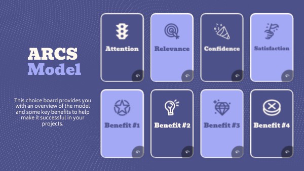 Use this choice board to learn more about the ARCS model and how you can utilize it in your instructional design projects for adult learners.