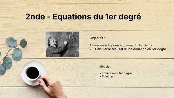 Objectifs : 1 – Reconnaître une équation du 1er degré 2 – Calculer le résultat d’une équation du 1er degré