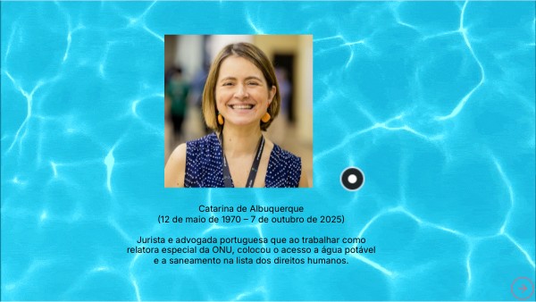 Catarina de Albuquerque (12 de maio de 1970 – 7 de outubro de 2025) Jurista e advogada portuguesa que ao trabalhar como relatora especial da ONU, colocou o acesso a água potável e a saneamento na lista dos direitos humanos.