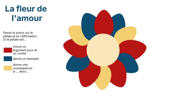 Passe la souris sur le pétale et lis l'affirmation. Si le pétale est...