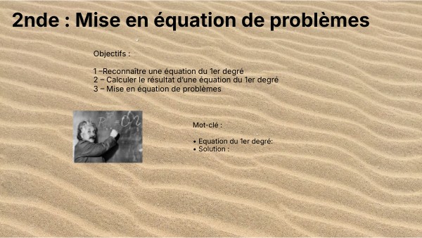 Mot-clé : • Equation du 1er degré: • Solution :