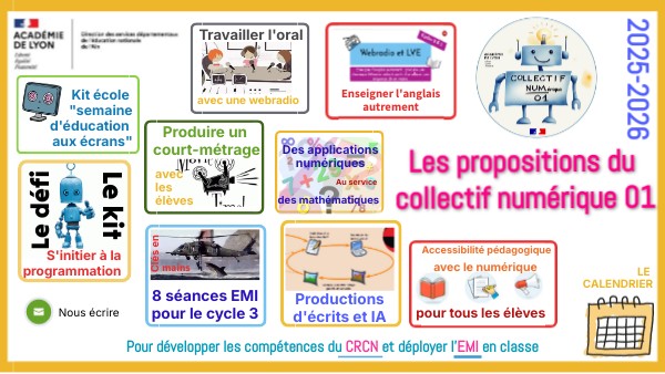 Le collectif numérique 01 vous propose deux manières d'entrer dans le monde de la programmation : - relever les défis proposés en autonomie (une phase sans matériel et une phase avec robots et conseiller numérique en appui) - accueillir des robots en classe sur une journée ou une demie-journée en mode découverte