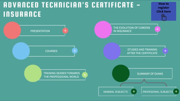 Students who have obtained the ATS in Insurance can continue their studies in several ways:• Professional degree in insurance; • Bachelor's degree in compensation; • Bachelor's degree in wealth management or financial product marketing. They will be required to continue their training throughout their professional lives through continuing education. They may also pursue degree programmes leading to a master's degree.