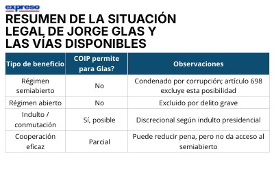 Resumen de la situación legal de Jorge Glas y las vías disponibles