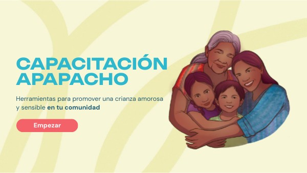 El programa Apapacho es un programa de crianza de 11 sesiones presenciales dirigido a madres, padres y cuidadores en el que a través de la reflexión se brindan y construyen herramientas de crianza amorosa y sensible. En esta ocasión, la implementación constará de 5 sesiones, en las que se abordarán temas clave como: el juego y el tiempo de calidad, las emociones de niñas, niños y cuidadores, las rutinas, las normas y límites, así como el manejo de situaciones difíciles, como las pataletas.
