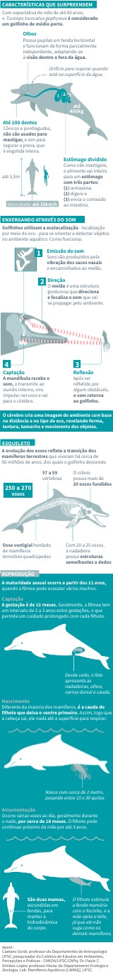 Golfinhos utilizam a ecolocalização - localização por meio do eco - para se orientar e detectar objetos no ambiente aquático. Como funciona: