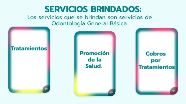 Los servicios que se brindan son servicios de Odontología General Básica.