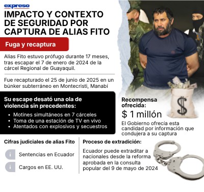 Alias Fito estuvo prófugo durante 17 meses, tras escapar el 7 de enero de 2024 de la cárcel Regional de Guayaquil. Fue recapturado el 25 de junio de 2025 en un búnker subterráneo en Montecristi, Manabí