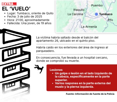 La víctima habría saltado desde el balcón del apartamento 26, ubicado en el quinto piso. Habría caído en los exteriores del área de ingreso al parqueadero. En consecuencia, fue llevada a un hospital cercano, donde se comprobó su muerte.