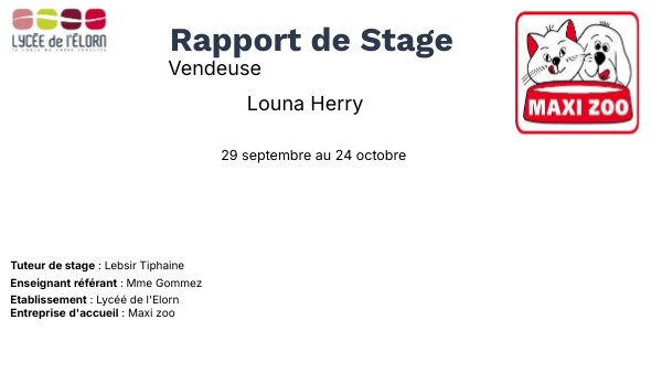 Mon stage à Maxi Zoo m’a permis de découvrir le fonctionnement d’un magasin spécialisé dans les produits pour animaux. J’ai appris comment s’organise le travail au quotidien et comment aider les clients à trouver ce dont ils ont besoin. Pendant ce stage, j’ai réalisé différentes tâches comme la mise en rayon, le réapprovisionnement, le facing, la vérification des dates et le maintien de la propreté du magasin. Ces activités m’ont aidée à devenir plus autonome et plus organisée.