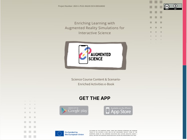 This Scenario-Enriched Activities e-Book includes a variety of Augmented Reality based activities under 12 Science Course Units for Science techers and students. These scenario-enriched course content and AR-based activities were specially designed for the target group of the Augmented Science project (science teachers and secondary school students) . Science course content, units and activities were determined after a serious Needs Analysis study with experts, science teachers, educational technologists and academicians. Each unit has its own AR based activity. Teachers or students can easily scan the specially designed target images in the e-book using their mobile phones or tablets. Then they will be able to reach the AR-based activity, specific to the science course content. The e-book is also printable. These high quality AR-based activities were designed and developed in order to enhance learning, interaction, challenge and curiosity. These activities will contribute to Science teaching/learning process in schools. Thanks to augmented reality, students will be able to concretize abstract concepts. It will be easier for them to understand the topics and identify the relationships between concepts. A more fun and interactive learning environment will motivate them. Thanks to this e-book, learning materials and AR-based activities that can be used by science teachers in digital environments has been developed, and the continuity of students’ learning will be ensured. The e-book can easily be used both in face to face and distance education settings.