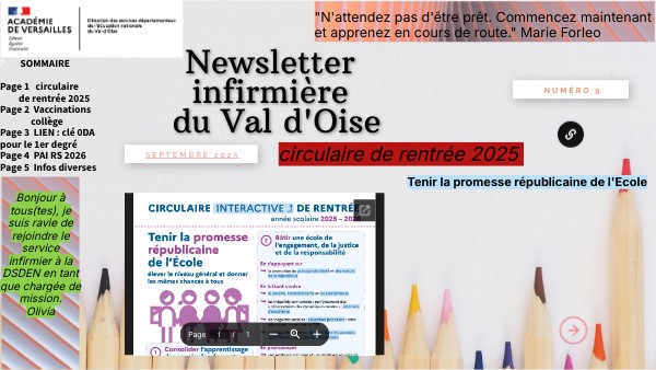P SOMMAIRE Page 1 circulaire de rentrée 2025 Page 2 Vaccinations collège Page 3 LIEN : clé 0DA pour le 1er degré Page 4 PAI RS 2026 Page 5 Infos diverses