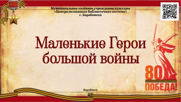 Источники: Маленькие герои большой войгны [Электронный ресурс] // https://dzen.ru/a/aAZS2hiJYx8bEdix (дата обращения: 01. 07. 2025 г.) Маленькие герои большой войны: дети, которые сражались за Победу [Электронный ресурс] // https://dhsh-ilski.krd.muzkult.ru/media/2021/06/22/1300276501/Malen_kie_geroi_bol_shoj_vojny_1_compressed.pdf (дата обращения: 03. 07. 2025 г.)