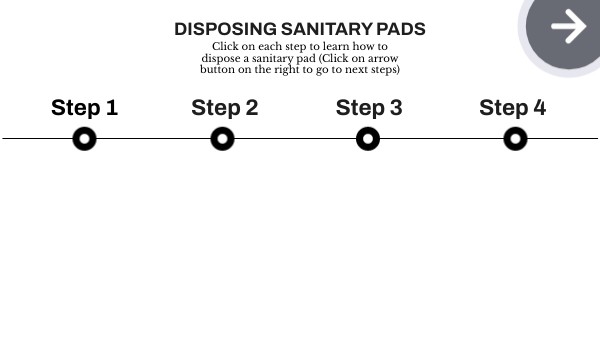 Click on each step to learn how to dispose a sanitary pad (Click on arrow button on the right to go to next steps)