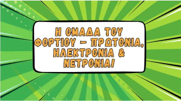 Ο μαθητές βλέπουν μια σειρά σωματιδίων και σενάρια βασισμένα στο φορτίο. Πρέπει: 1) να αντιστοιχίσουν κάθε σωματίδιο (πρωτόνιο, ηλεκτρόνιο, νετρόνιο) με το φορτίο του και 2) να προβλέψουν τι θα συμβεί όταν δύο σωματίδια πλησιάσουν το ένα το άλλο (έλξη, απώθηση ή καμία επίδραση).
