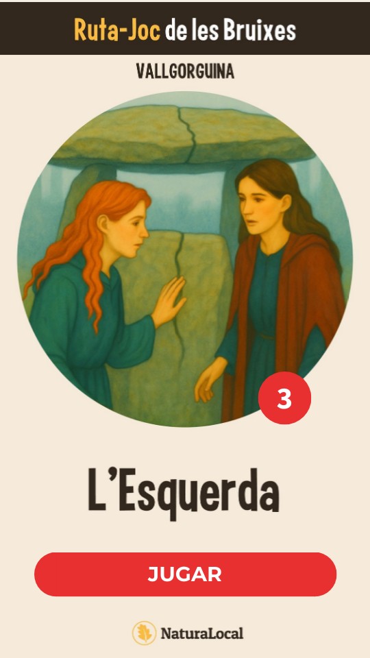 Uns 10 metres més endavant arribareu a una petita esplanada amb un encreuament, just abans d’arribar a l’encreuament a la banda dreta trobareu un gran pi amb liquen verd al tronc. Darrera del seu tronc trobareu el codi QR nº3