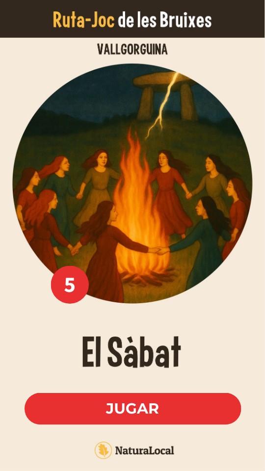 Si seguim el camí que ens ha portat al dolmen i seguim amunt, arribareu a un petit turó amb uns pins i unes roques a l’esquerra, darrera d’un dels pins d’aquest turó al costat de les roques trobareu el codi QR nº 5.