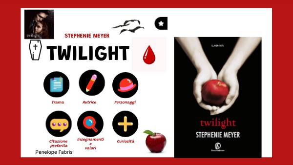 Questo libro parla di una ragazza adolescente e la sua storia d'amore un po' complicata. Bella ha 17 anni e si è appena trasferita per un po' dalla casa della madre ( Phoenix ) a quella del padre ( Forks ). Bella inizia il suo primo giorno di scuola e si fa degli amici. Alla pausa pranzo però si accorge di alcuni ragazzi, i fratelli Cullen. Da quel momento Edward Cullen è il suo unico pensiero, ma lui non sembra molto contento di conoscerla e bella intuisce che c'è qualcusa che non va... un segreto da rivelare.