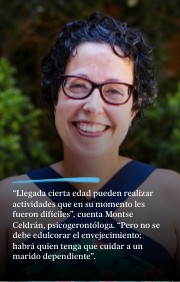 “Llegada cierta edad pueden realizar actividades que en su momento les fueron difíciles”, cuenta Montse Celdrán, psicogerontóloga. “Pero no se debe edulcorar el envejecimiento; habrá quien tenga que cuidar a un marido dependiente”.