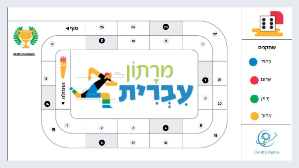 תִזרְקוּ אֶת הַמַטְבֵעַ: אִם יוֹצֵא אֲגוּדָל לְמַעלָה תִתקַדמוּ 2 מִשׁבְצוֹת. אִם יוֹצֵא אֲגוּדָל לְמַטָה, תַחזְרוּ מִשׁבֶצֶת 1 לְאָחוֹר Lanza la moneda: si sale el pulgar hacia arriba, avanza dos casillas; si sale el pulgar hacia abajo, retrocede una casilla.