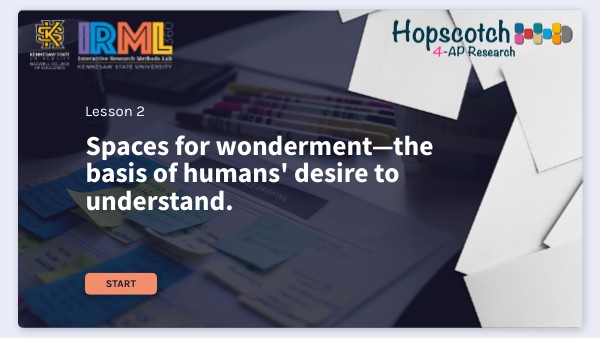 1. Read Spaces for Wonderment: Amplifying Creativity 2. Craft a thought-provoking question using the template: "What would a world without_____________look like?" or write your own. 3. Find a space to talk and listen freely, away from all digital distractions, with a partner or group. Use your question to start a dialogue and allow time to explore the topic, this may be ten or twenty minutes. If you are working alone, just think and see where your thoughts take you. Embrace the time to be curious. 4. Select a piece of music that resonates with you based on the rhythm, harmony, lyrics, or beat to share with your partner or group. In a space free from distractions, allow your partner or group to listen to the music with their eyes closed, allowing their minds to wander. If you are working alone, listen to the music with your eyes closed and let you mind wander. 5. Choose three strategies for amplifying creativity and engage in them over the next week. Be prepared to share your reflections with your class or a partner. 6. Use what you learned to guide your topic exploration and the resources in Step 2 of Hopscotch 4-AP Research.