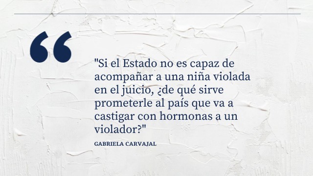 "Si el Estado no es capaz de acompañar a una niña violada en el juicio, ¿de qué sirve prometerle al país que va a castigar con hormonas a un