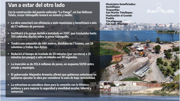 - Sustituirá a la panga metálica instalada en 2007, que trasladaba hasta 350 vehículos diarios sobre la presa Valsequillo.