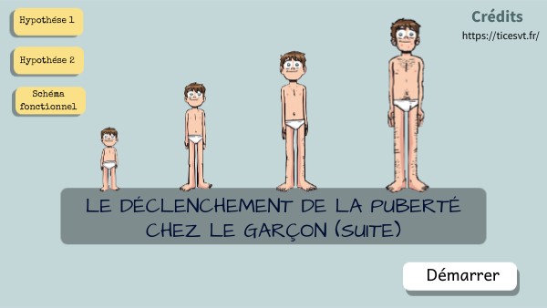 Hypothèse : c'est l' , une glande située dans le cerveau qui fabrique des hormones (FSH etLH) ce qui déclenche le fonctionnement des testicules à la puberté chez le garçon qui fabriquent alors des spermatozoïdes et de la testostérone.