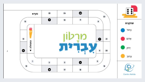תִזרְקוּ אֶת הַמַטְבֵעַ: אִם יוֹצֵא אֲגוּדָל לְמַעלָה תִתקַדמוּ 2 מִשׁבְצוֹת. אִם יוֹצֵא אֲגוּדָל לְמַטָה, תַחזְרוּ מִשׁבֶצֶת 1 לְאָחוֹר Lanza la moneda: si sale el pulgar hacia arriba, avanza dos casillas; si sale el pulgar hacia abajo, retrocede una casilla.