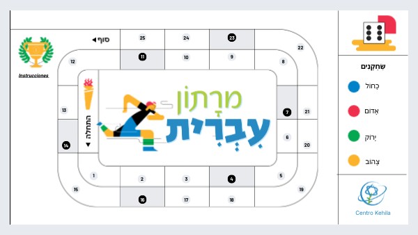 תִזרְקוּ אֶת הַמַטְבֵעַ: אִם יוֹצֵא אֲגוּדָל לְמַעלָה תִתקַדמוּ 2 מִשׁבְצוֹת. אִם יוֹצֵא אֲגוּדָל לְמַטָה, תַחזְרוּ מִשׁבֶצֶת 1 לְאָחוֹר Lanza la moneda: si sale el pulgar hacia arriba, avanza dos casillas; si sale el pulgar hacia abajo, retrocede una casilla.