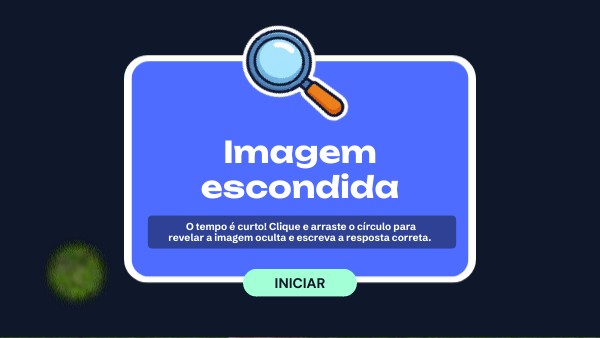 O tempo é curto! Clique e arraste o círculo para revelar a imagem oculta e escreva a resposta correta.