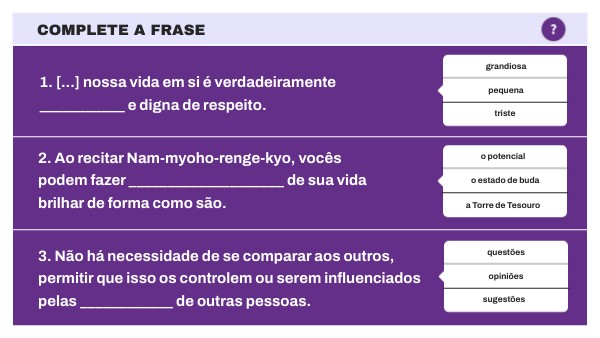 2. Ao recitar Nam-myoho-renge-kyo, vocês podem fazer ____________________ de sua vida brilhar de forma como são.
